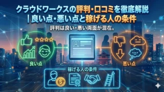 クラウドワークスの評判は「始めやすい」「手数料が高い」など良い・悪い両面が混在しています。本記事では実際の口コミをテーマ別に集計し、公式データをもとに稼げる人・稼げない人の違いを解説します。登録前に知っておきたい情報をまとめました。