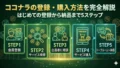 ココナラでの購入は、会員登録からサービス検索・購入・トークルームでのやり取り・納品完了まで5ステップで進みます。支払い方法7種・手数料5.5%の計算例・キャンセルルールまで、はじめての方がつまずきやすいポイントをすべて解説します。
