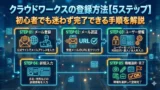 クラウドワークスのクライアント登録は、公式サイトからメールアドレスを入力し「仕事を依頼する」を選択するだけで、最短5分で完了します。