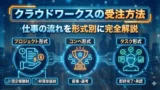 仮払い制度による報酬保護・3段階の手数料体系・3つの仕事形式と、サービスの全体像を把握しておくことで、登録後にスムーズに動き出せます。