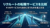 この5サービスはターゲット層・種別・対応エリアが明確に分かれており、比較表と目的別の分岐診断で自分に合うサービスをすぐに特定できます。